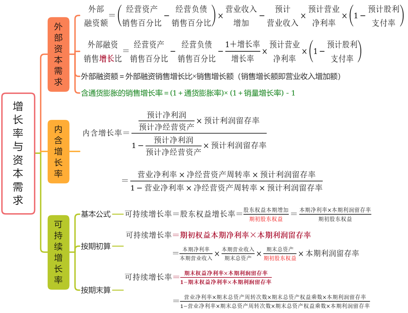 ③ 不发新股或回购 → 股东权益增长率=预计增加的留存收益/期初所有者权益=预计可持续增长率